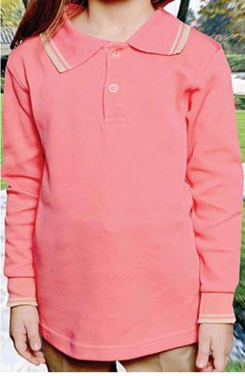 Üst: Uzun kollu , klasik kesim açık fuşya/pembe, geniş yakalı tişört.